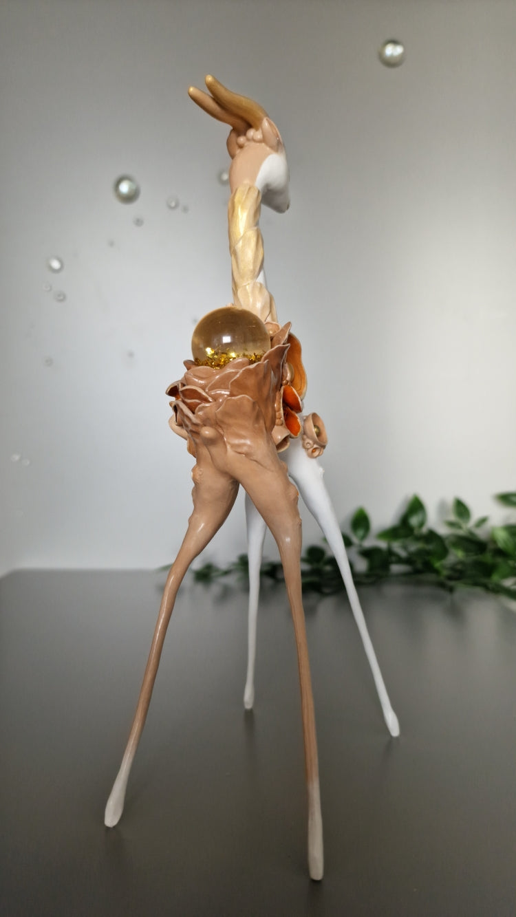 Meet Lea, a playful and light-hearted deer Heartbeastie. Her body shifts from soft white to gentle green, creating a soothing gradient that reflects her lively spirit. Resting on her back is a clear magical orb that glows like a drop of morning dew. Lea brings curiosity, and a sense of ease into your life. With her around, everyday moments feel a little lighter.