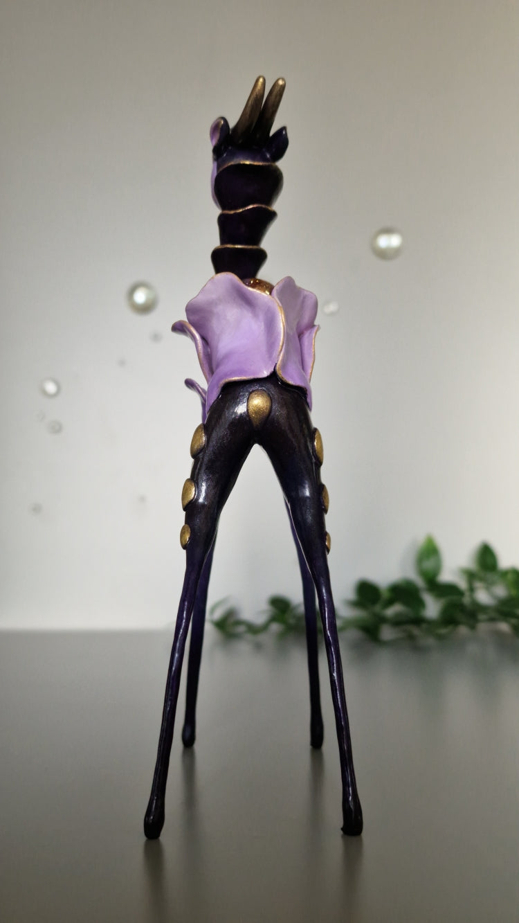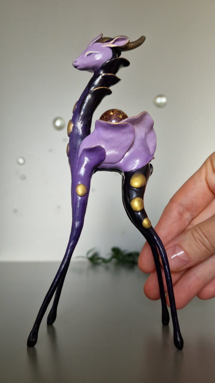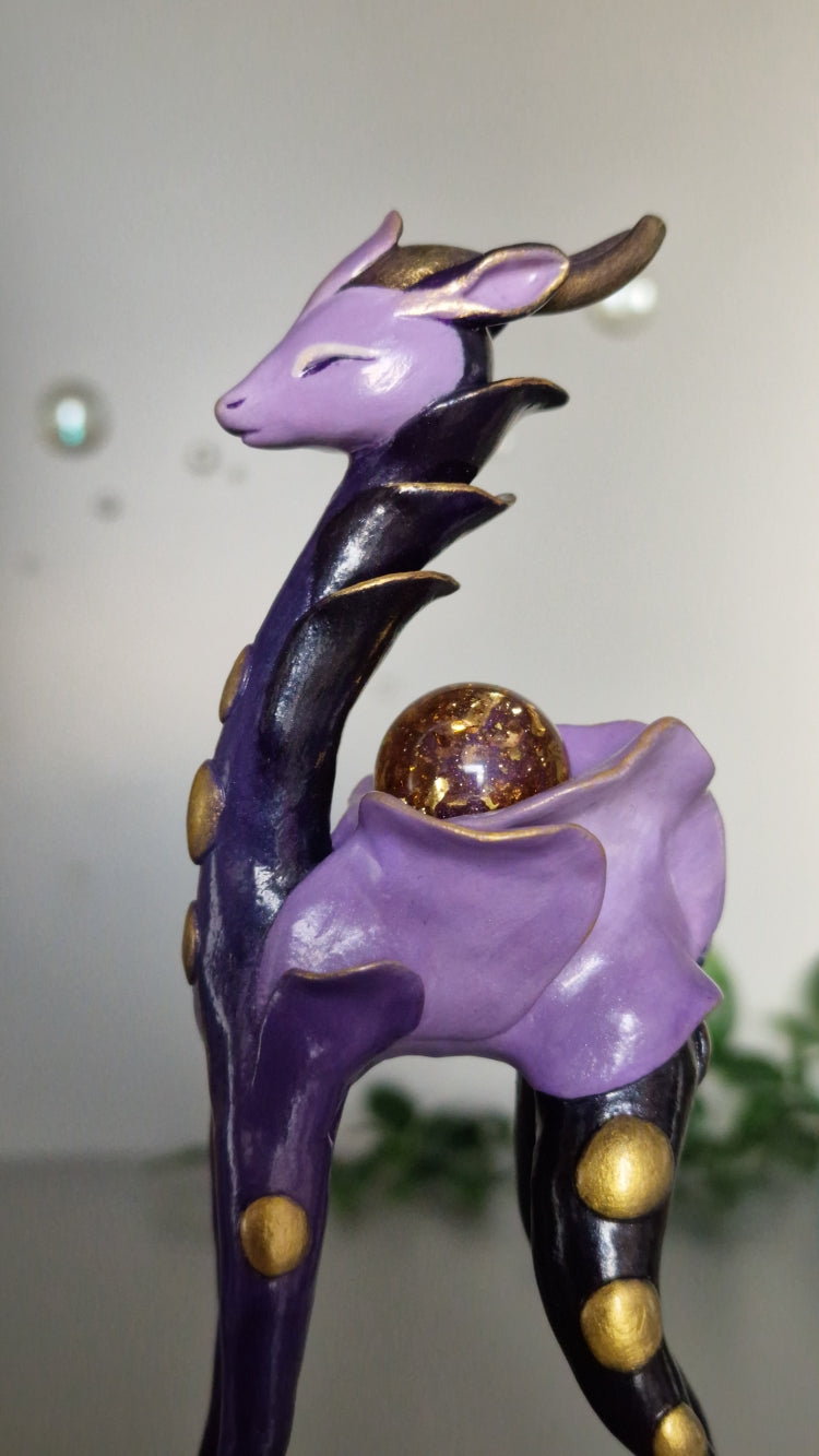 Introducing Serena, a tranquil deer Heartbeastie whose name means “clear, tranquil, and serene”. True to her name, she radiates a calming presence. Her pale body is adorned with delicate petal-like details in shades of soft pink, blue, and violet. On her back rests a magical orb with a swirling pink centre. Serena brings a deep sense of calm into your life, encouraging you to seek tranquillity amidst life's challenges.